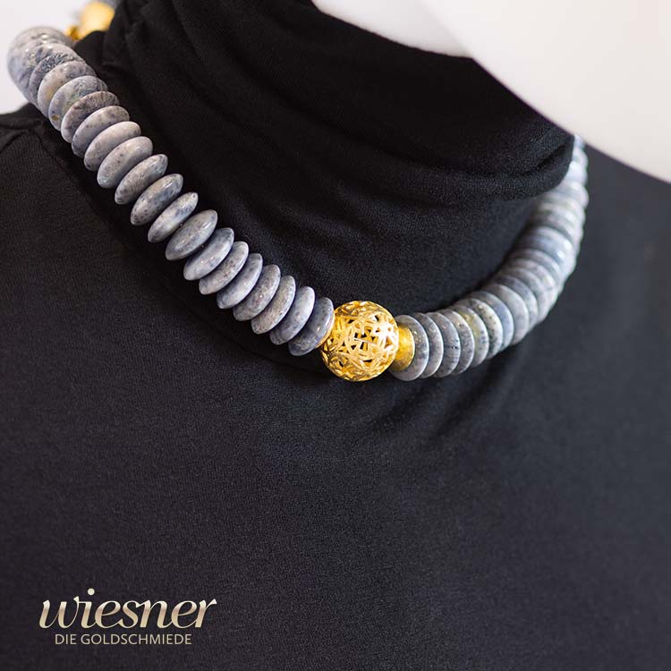 Edelstein Kette Aventurin blau: Ein Meisterwerk der Goldschmiedekunst