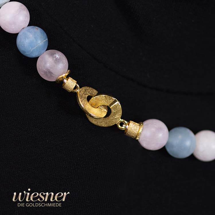Jedes Detail dieser Kette zeugt von höchster Handwerkskunst. Die vergoldeten Silberelemente zwischen den Steinen setzen gekonnt Akzente und verleihen dem Schmuckstück eine zusätzliche Wertigkeit. Ein besonderes Highlight ist der dekorative Brevetverschluss aus vergoldetem Silber, der nicht nur funktional ist, sondern auch als eigenständiges Designelement überzeugt.